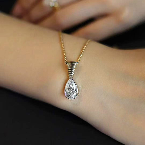 3.00 ct Ct Pear Cut Lab Grown Diamond Necklace: 14K Gold Solitaire Pendant, IGI Certified