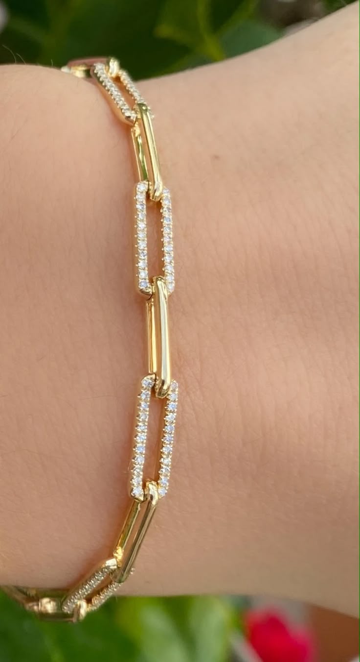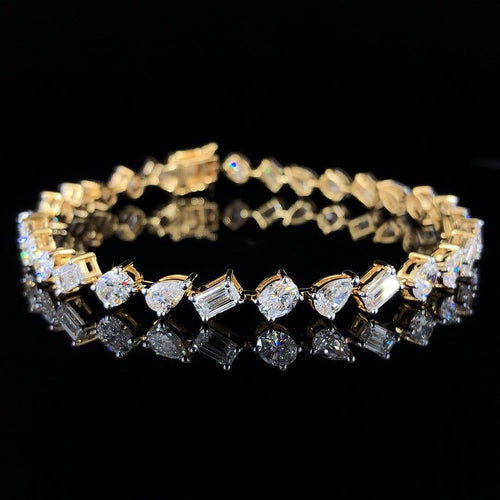 14k Yallow Gold Ovel,Emerald And Pear Cut Eco-Frindly Diamond Chain Tennis Bracelet