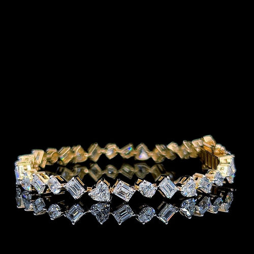 14k Yallow Gold Ovel,Emerald,Hart Cut Eco-Frindly Diamond Chain Tennis Bracelet